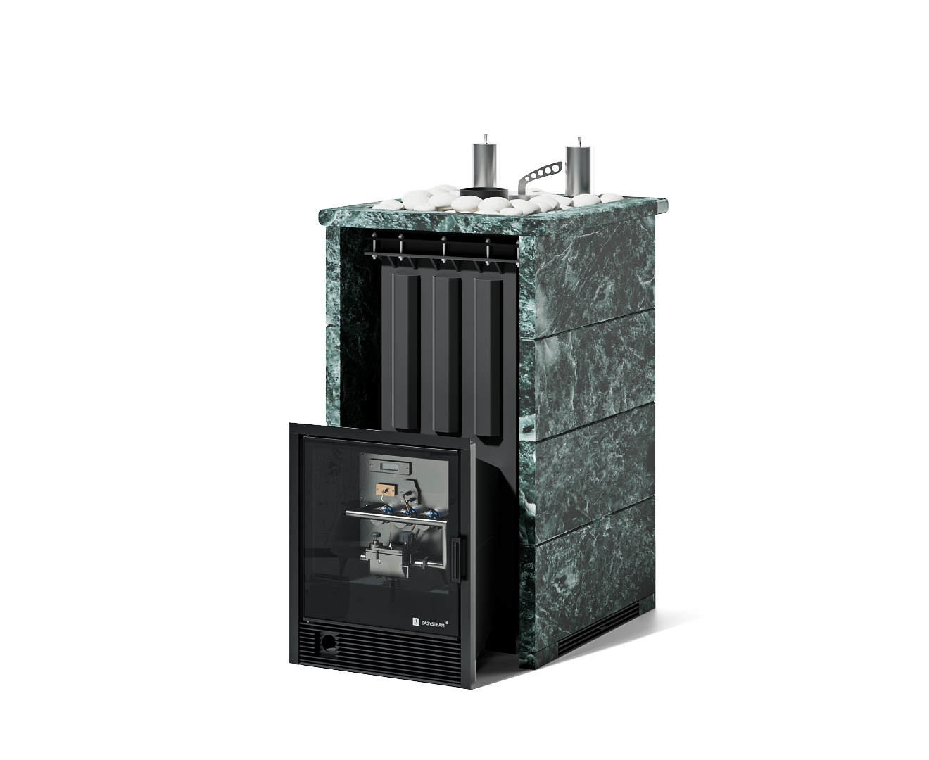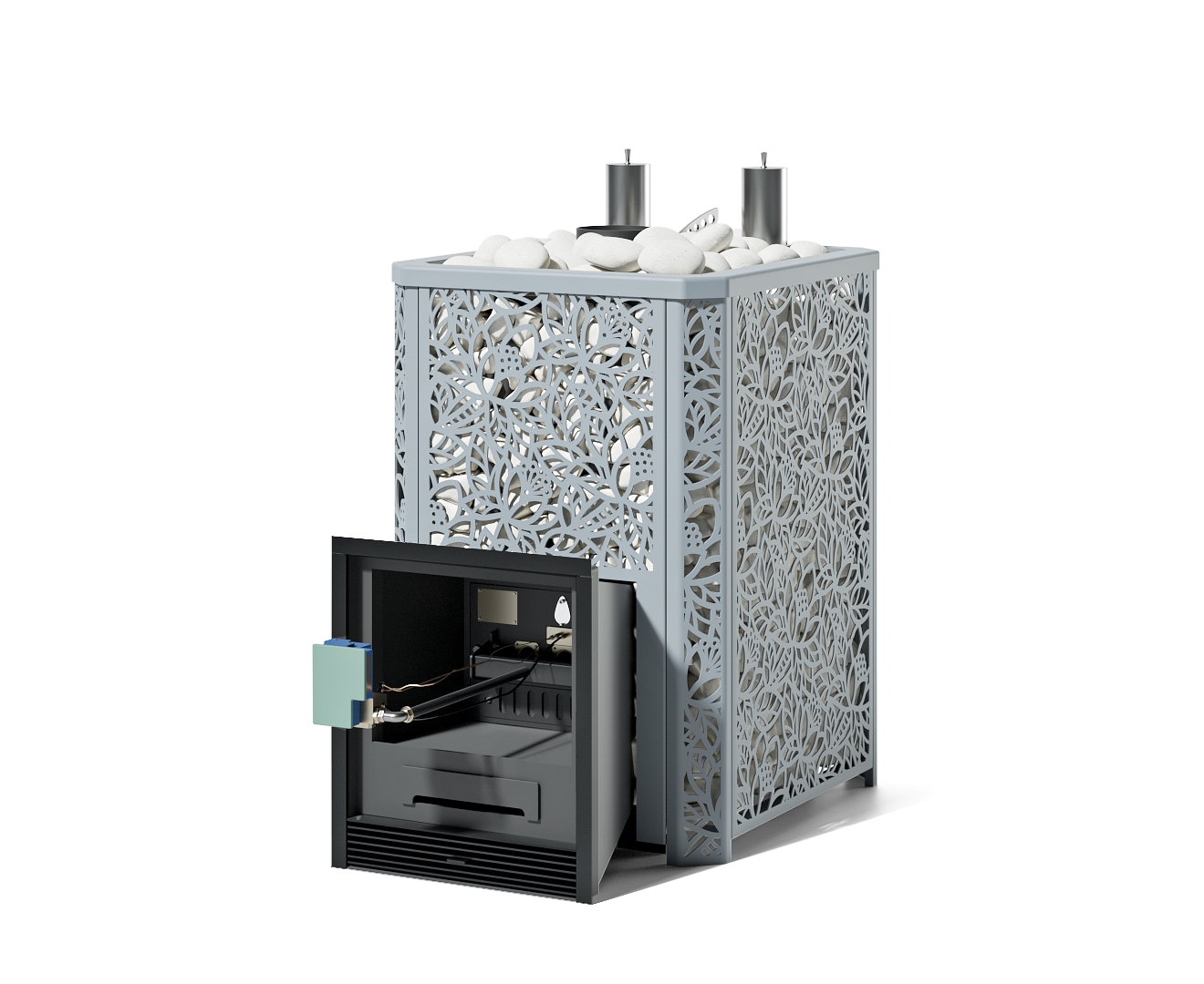 Печь оснащена съёмной закрытой каменкой, позволяющей разогревать находящиеся в ней камни до температуры 600 градусов