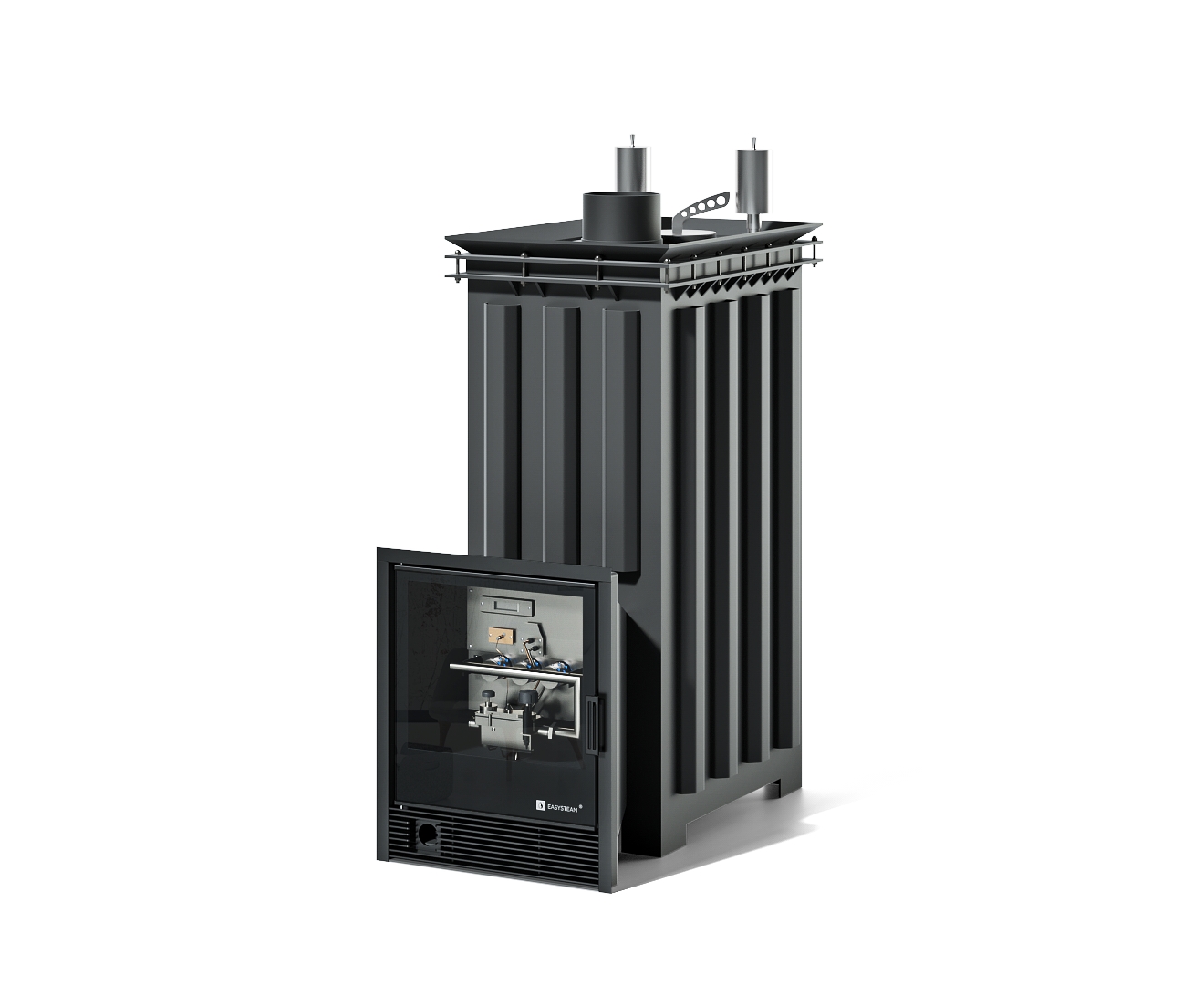 Печь оснащена двумя парогенераторами, позволяющими наиболее эффективно получать мелкодис- персный пар в больших количествах