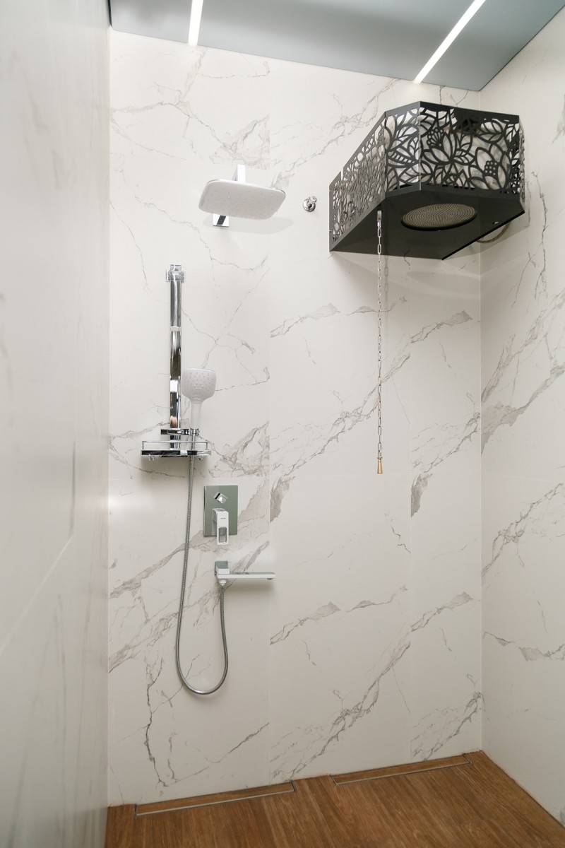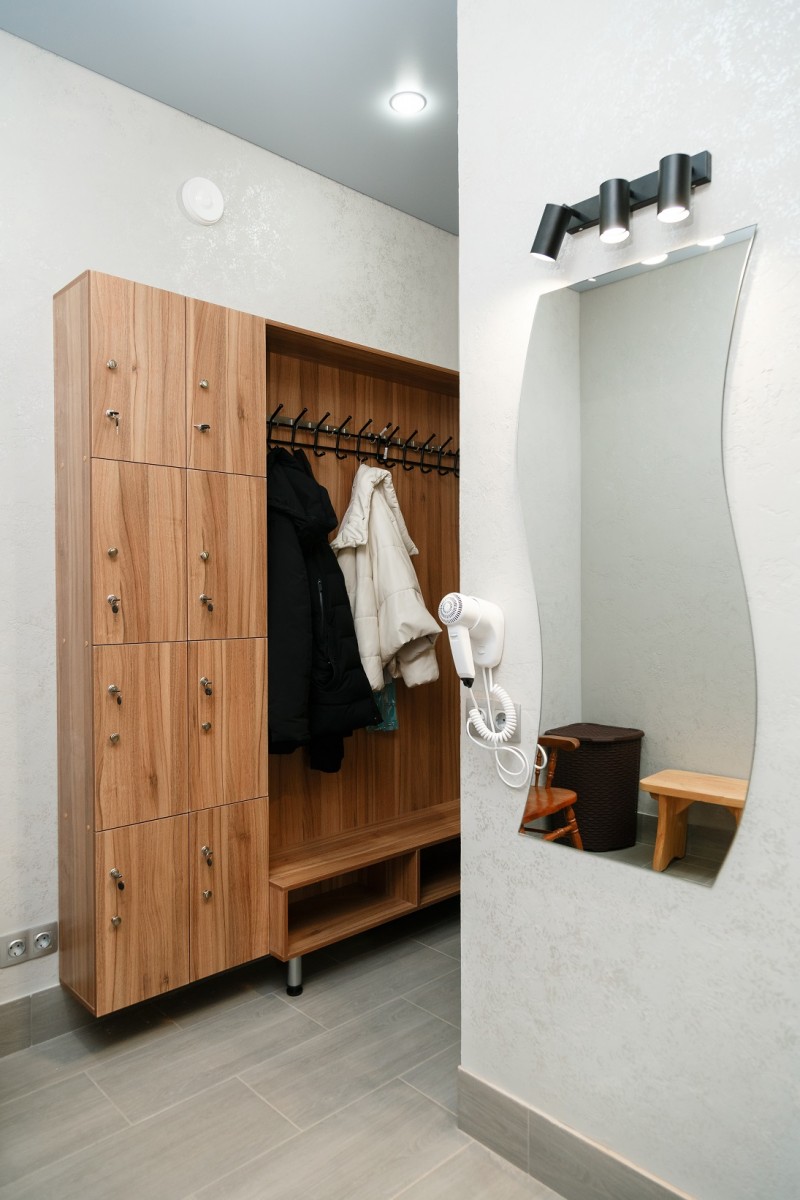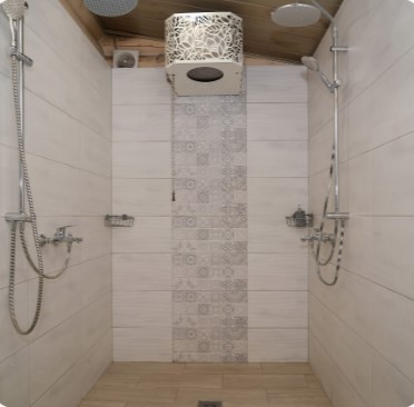 Одной из интересных особенностей бани является возможность управлять паром с помощью голосовых команд через Яндекс Алису. Это делает процесс еще более комфортным и современным. После банных процедур можно принять бодрящий душ.