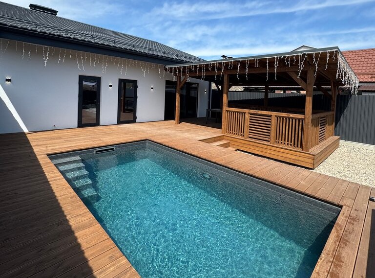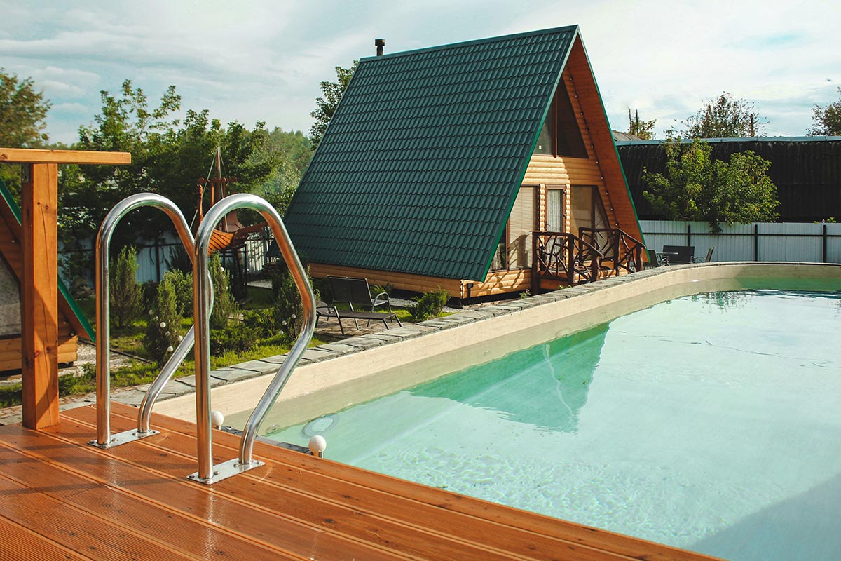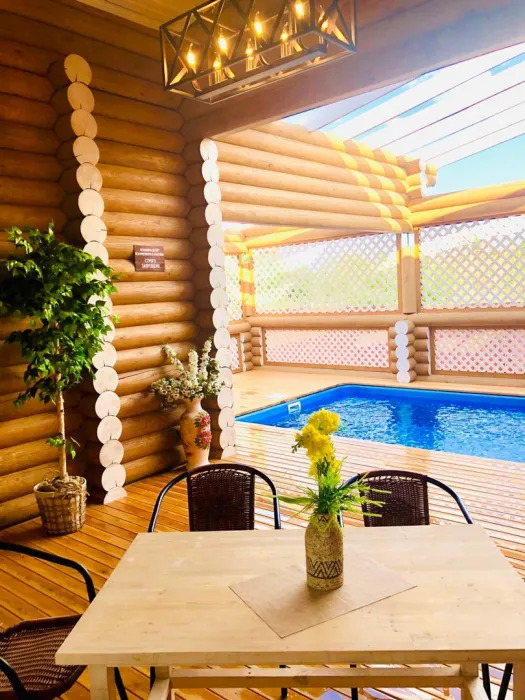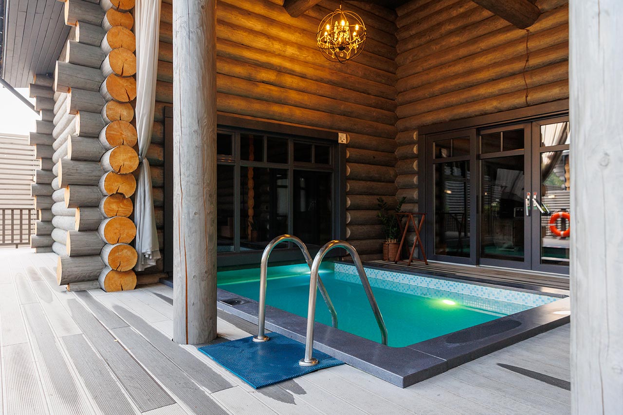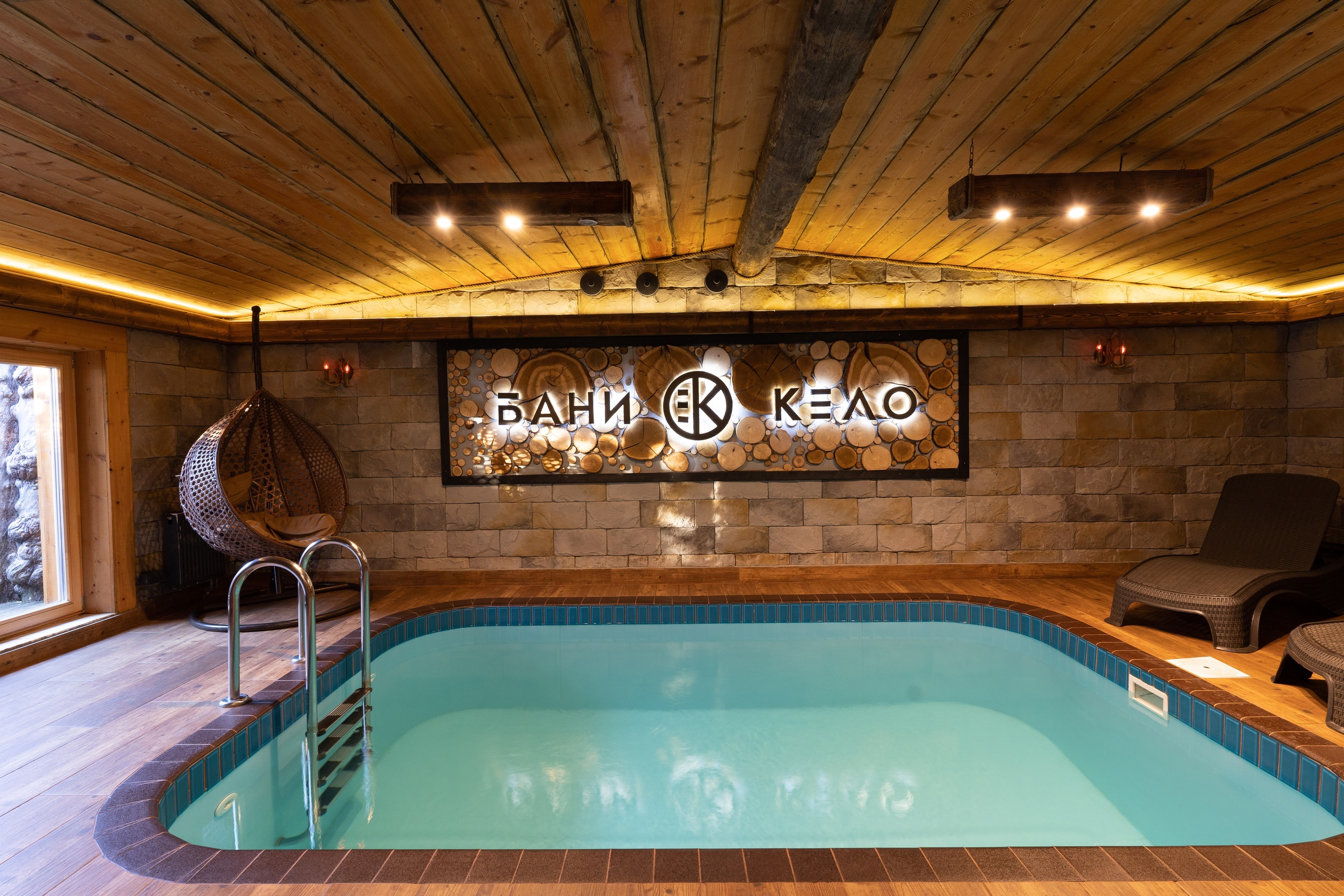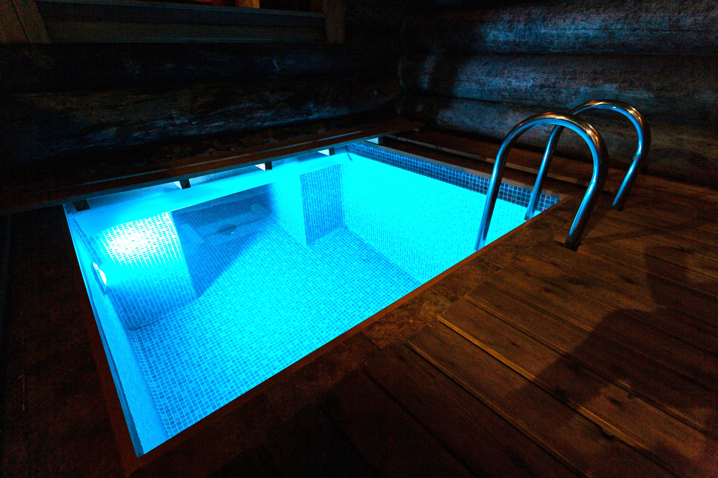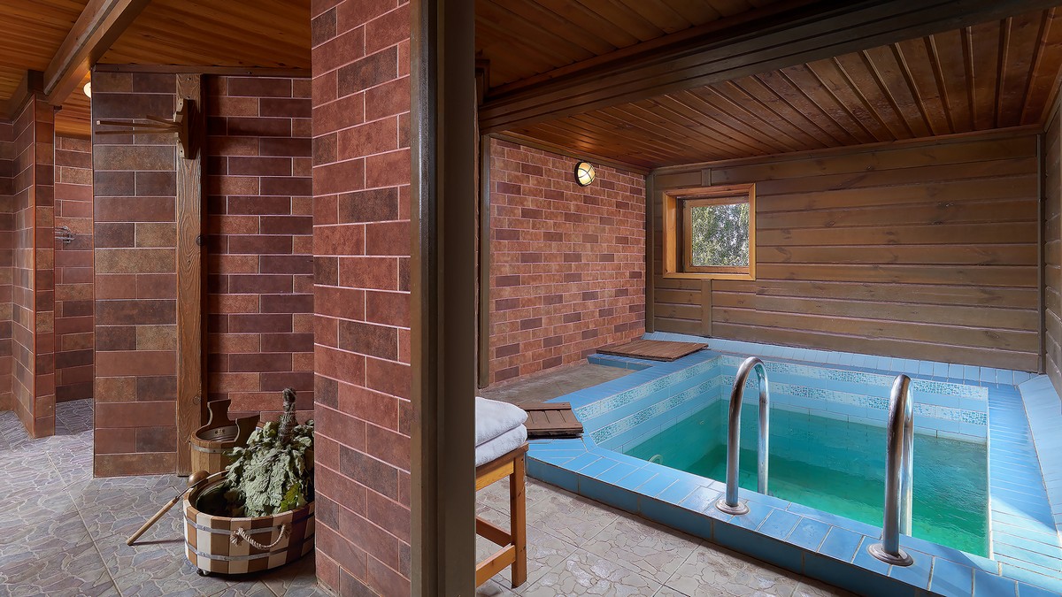 Для гостей оборудована аквазона с просторной помывочной и двумя купелями — с холодной и тёплой водой, что позволяет полностью расслабиться и насладиться водными процедурами. Любители активного отдыха оценят большой бассейн, где можно освежиться и зарядиться энергией.
