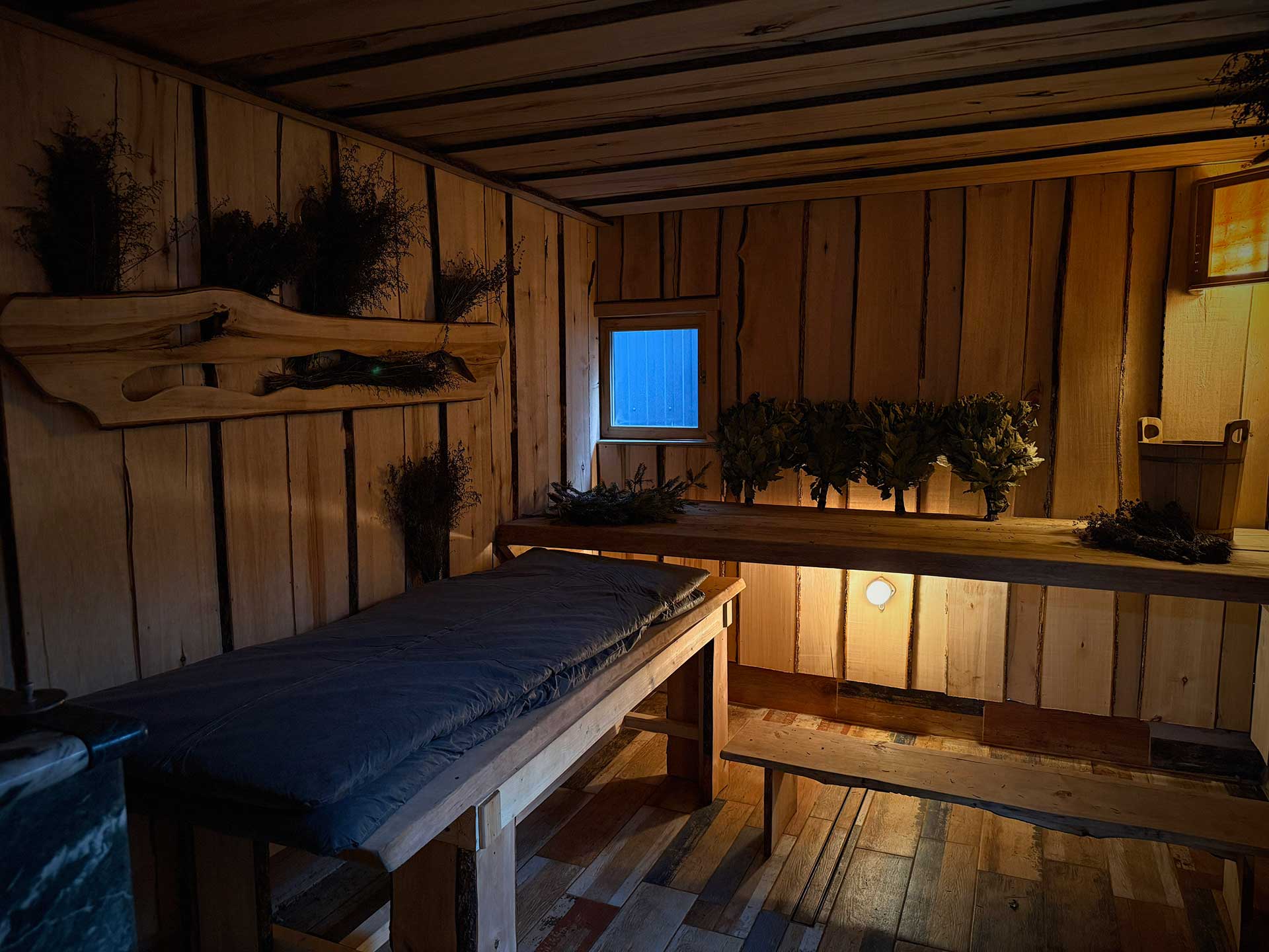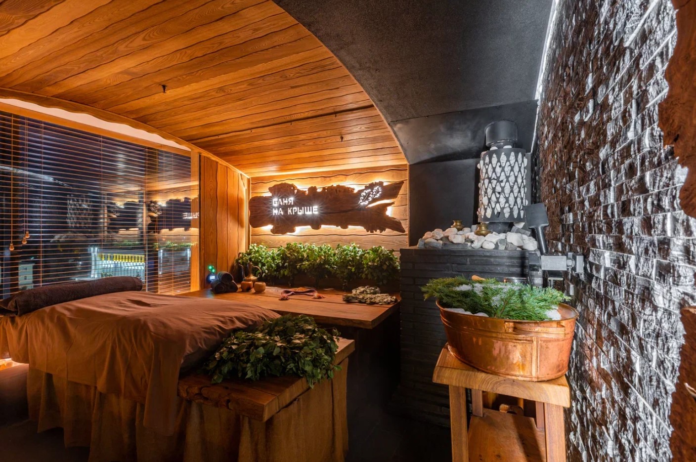 В банном комплексе есть женская и мужская общественная баня и отдельный домик «Кедровый сруб». В дополнительные услуги входят разные виды парения, и другие банные процедуры.