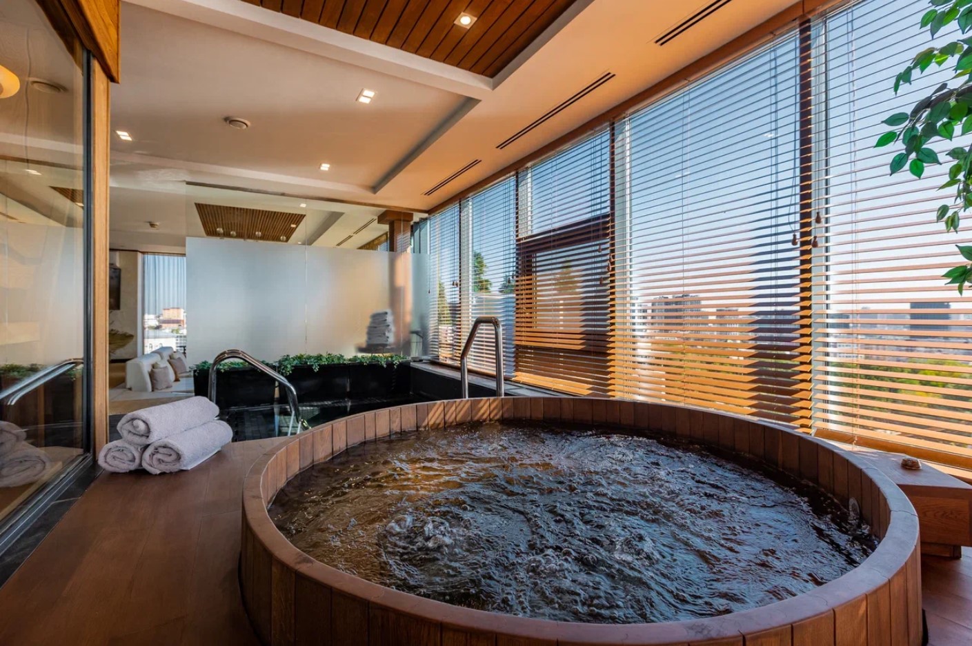 Комплекс оборудован бассейнами с системами гидро- и аэромассажа, обеспечивающими дополнительный комфорт и релаксацию.