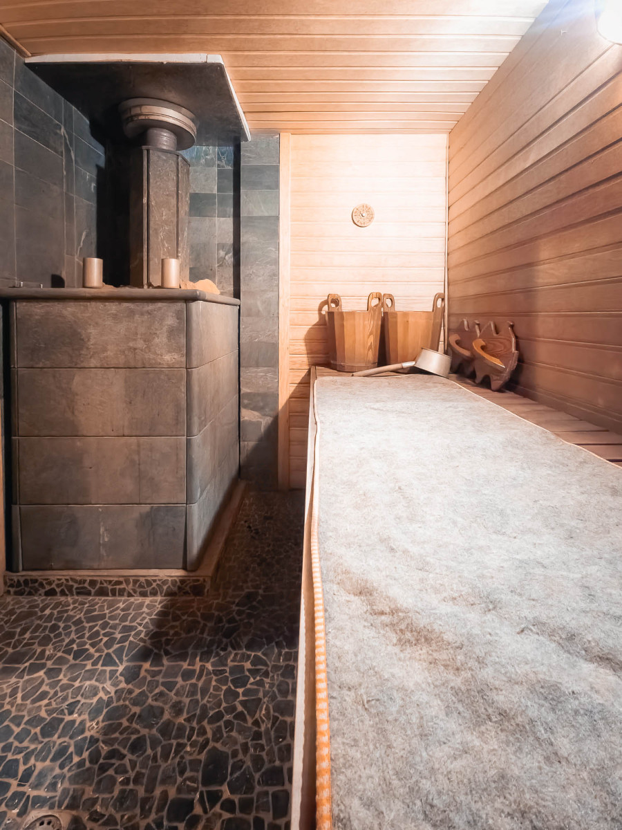 В банном комплексе три парных: Липа, Липа с лыком и Кело с отдельными зонами отдыха. В парной Кело находится печь Сочи К в облицовке из натурального камня пироксенит.