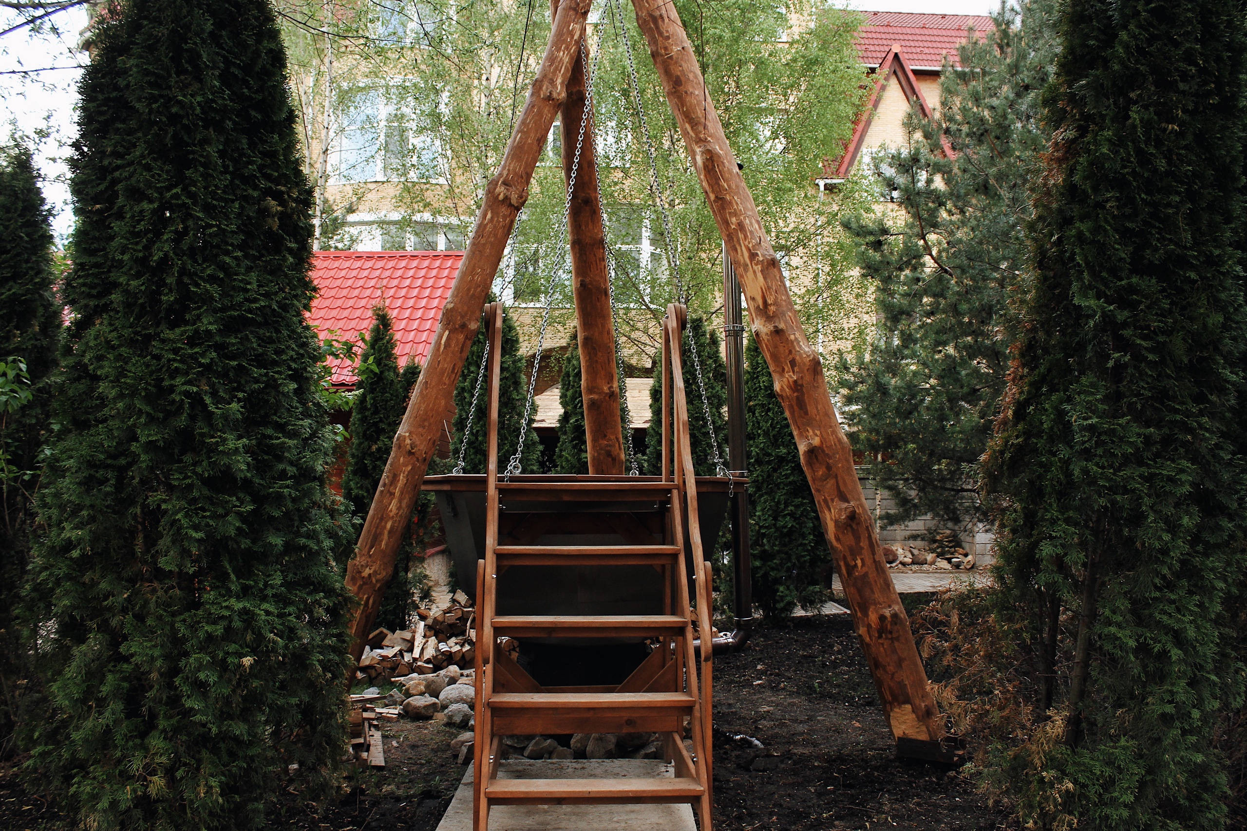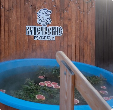 Банный комплекс имеет три парные, чаны, бассейны и уютную территорию. В двух парных установлены печи Ялта, в одной печь Сочи с открытым верхом.