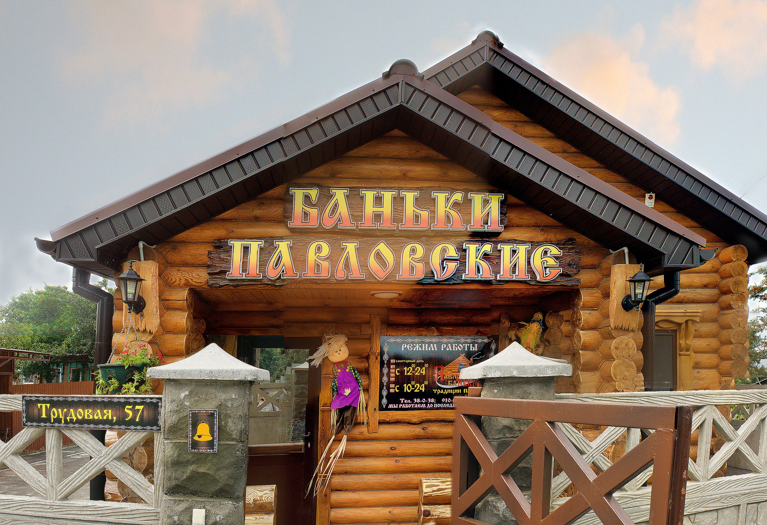 Современная общественная баня для мужчин и женщин. В качестве дополнительных услуг vip зал, кухня, массаж, парение от пар мастера.
