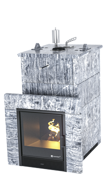 Использование камня в отделке позволяет исключить попадание на поверхность дерева капель горячей воды, за счет этого увеличивается эксплуатационный срок парной.