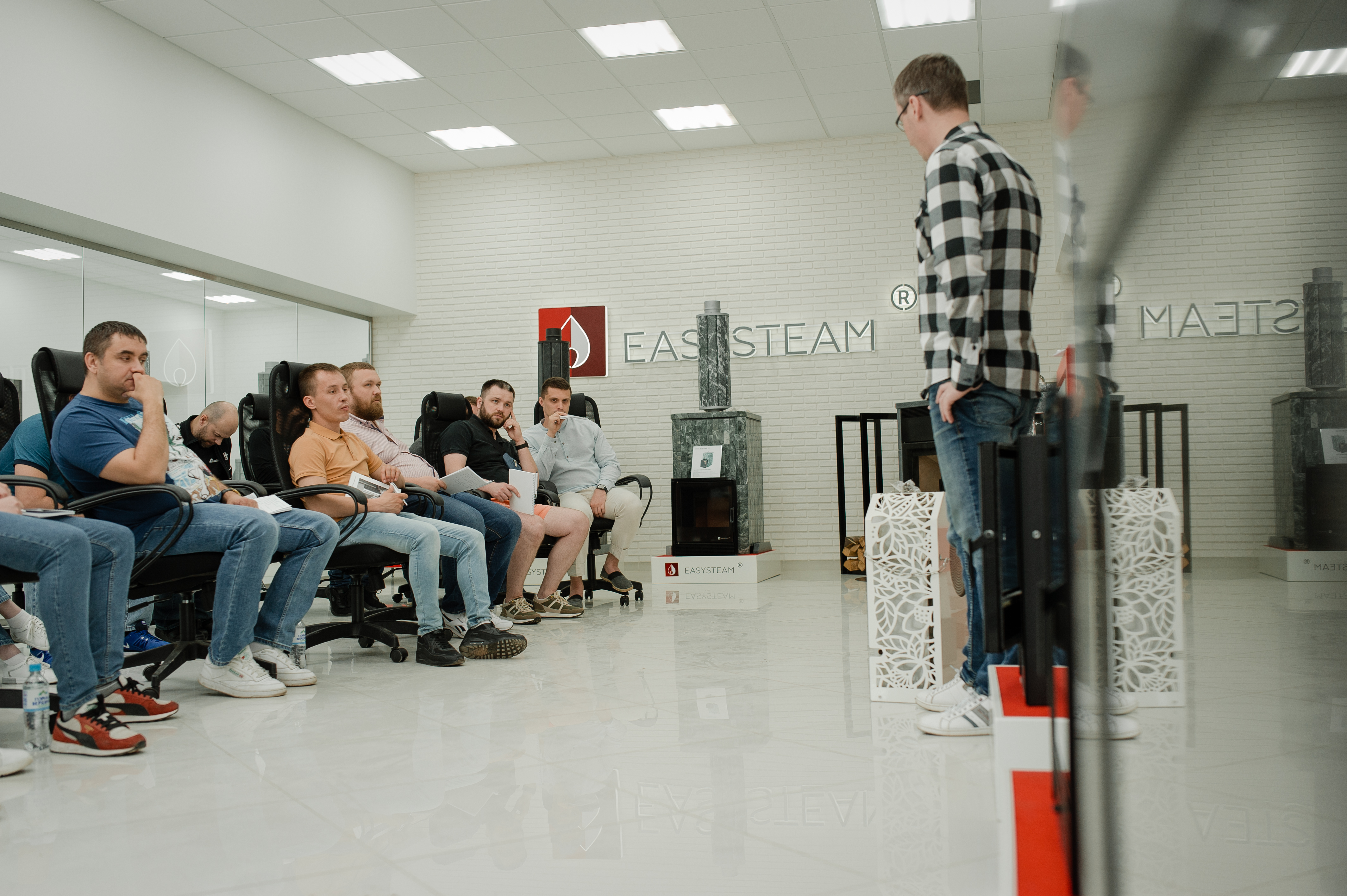 В течение нескольких часов специалисты Изистим из разных сфер деятельности делились знаниями с гостями, помогая лучше узнать все нюансы и тонкости продукции бренда EASYSTEAM. Огромная выставка продукции, на которой были представлены все линейки печей: для русской бани, для бани и сауны, новинка прошлого года серия печей Южная, печи для коммерческих бань, действующий камин, обливные устройства Каскад и множество дополнительного оборудования и фирменных банных аксессуаров, не оставила гостей равнодушными. По итогам встречи были закрыты все неясные моменты и накопившиеся вопросы. За весенне-летний период подобные встречи проведены с партнёрами из нескольких регионов и для Изистим стали уже традиционные.