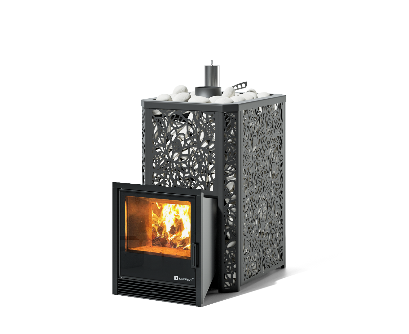 Особо прочная газо-дровяная печь постоянного действия, предназначенная для создания в парильном отделении общественной или коммерческой бани, условий русской бани и сауны, с присущим ей температурно-влажностным режимом. Резной кожух-сетка с открытой каменкой под закладку камней или с ламелями из природного камня позволяет сохранять выделяемое печью тепло и улавливать инфракрасное излучение. Ламели для кожуха могут быть изготовлен из четырёх видов природного камня: