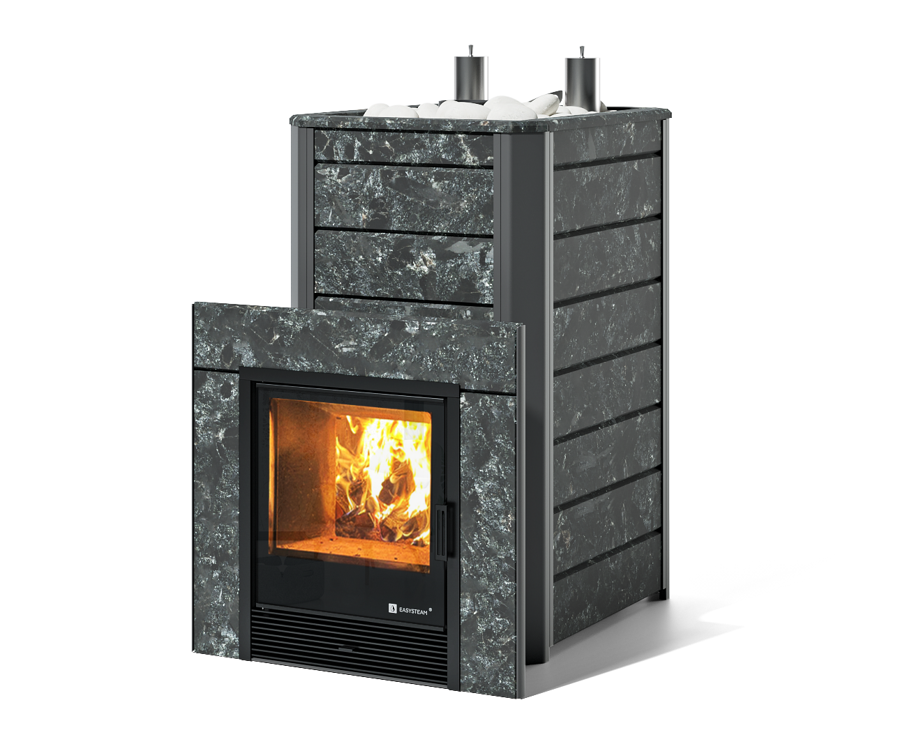Особо прочная газо-дровяная печь постоянного действия, предназначенная для создания в парильном отделении общественной или коммерческой бани, условий русской бани и сауны, с присущим ей температурно-влажностным режимом. Резной кожух-сетка с открытой каменкой под закладку камней или с ламелями из природного камня позволяет сохранять выделяемое печью тепло и улавливать инфракрасное излучение. Ламели для кожуха могут быть изготовлен из четырёх видов природного камня: