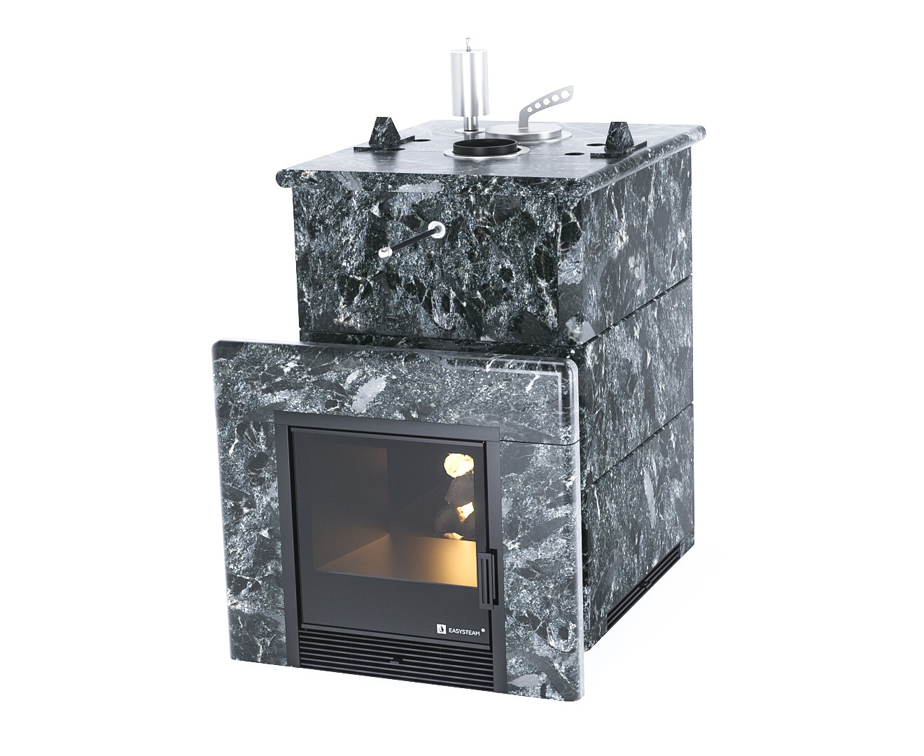 Закрытая каменка позволяет разогреть камни до высоких температур 500-600 градусов, а встроенный парогенератор обеспечивает попадание пароводяной смеси на нижний самый разогретый слой камней, и на выходе получить качественный мелкодисперсный лёгкий пар.