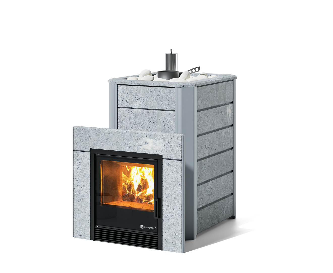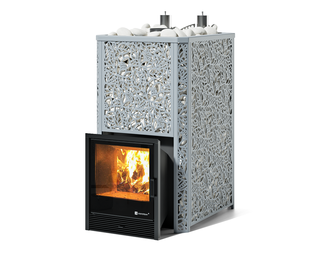 Особо прочная газо-дровяная печь постоянного действия, предназначенная для создания в парильном отделении общественной или коммерческой бани, условий русской бани и сауны, с присущим ей температурно-влажностным режимом. Резной кожух-сетка с открытой каменкой под закладку камней или с ламелями из природного камня позволяет сохранять выделяемое печью тепло и улавливать инфракрасное излучение. Ламели для кожуха могут быть изготовлен из четырёх видов природного камня: