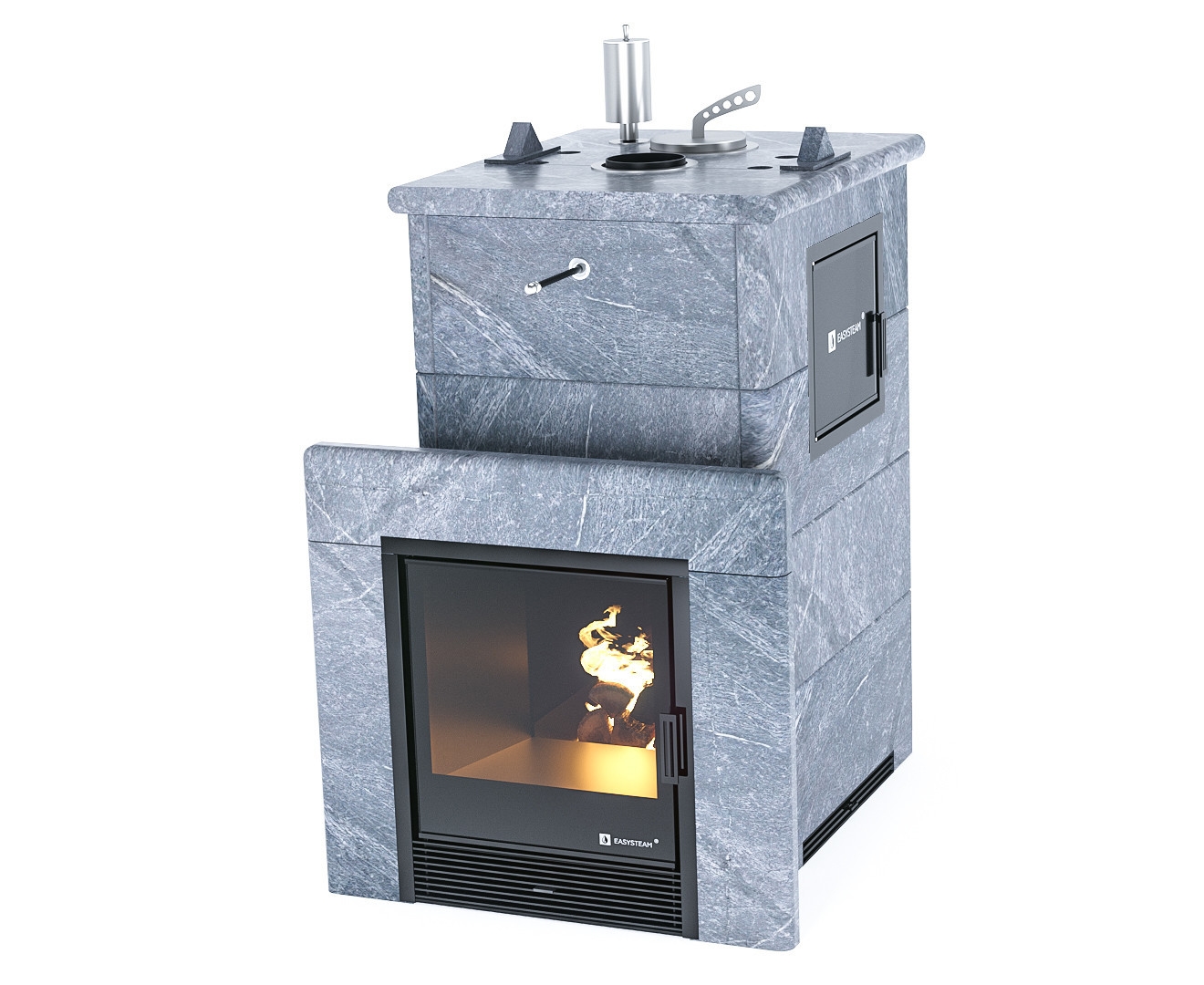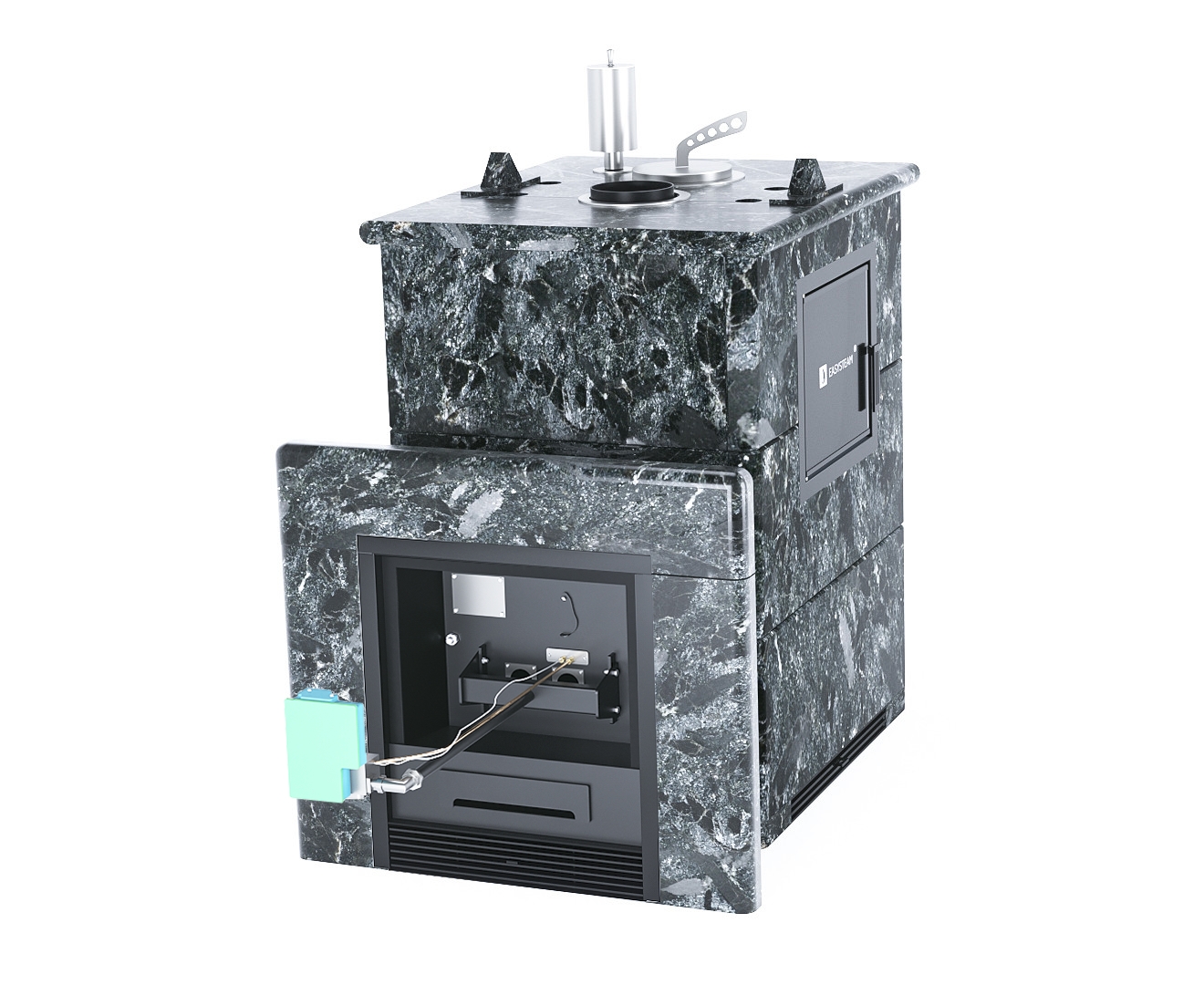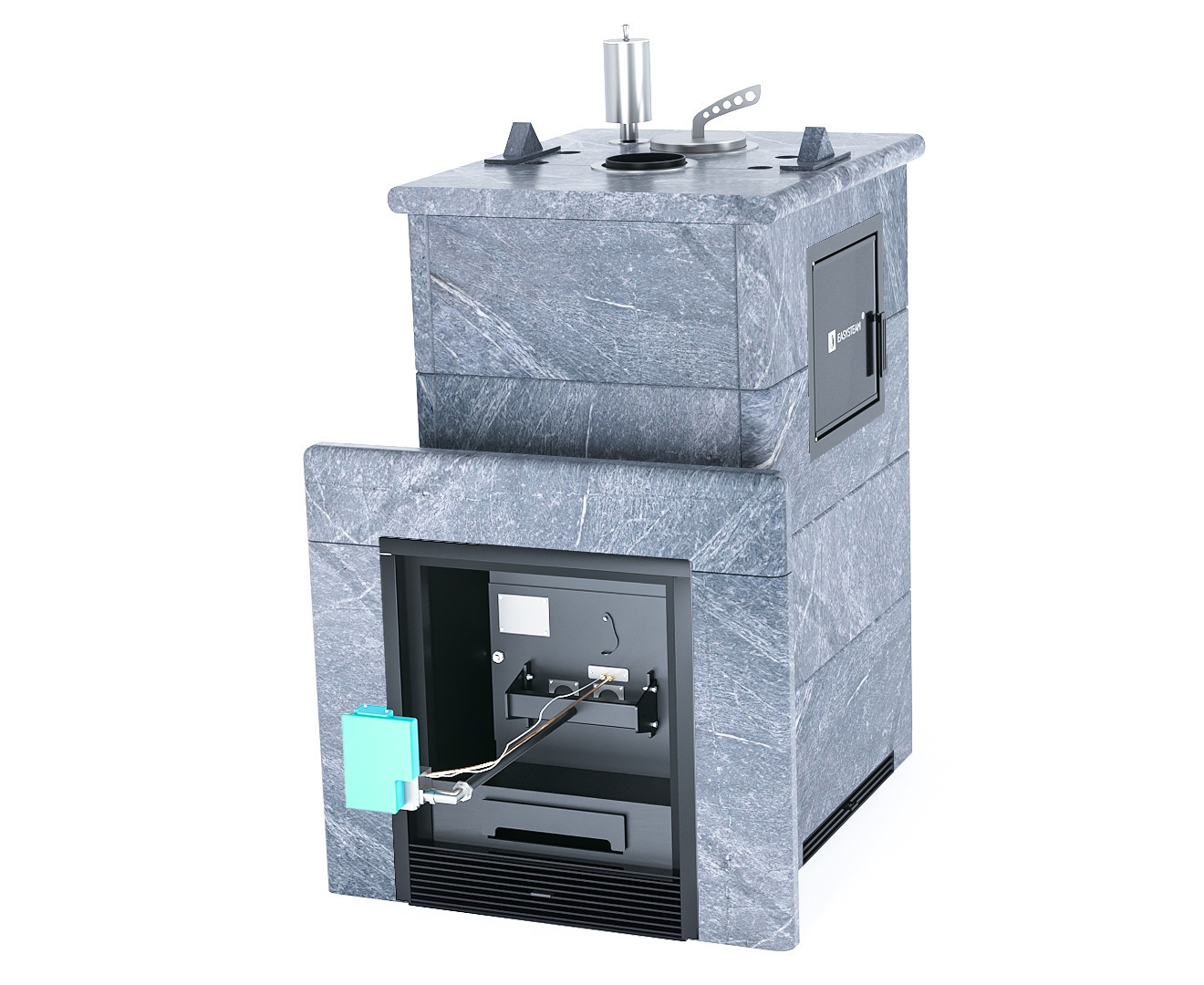 Печь оснащена съёмной закрытой каменкой, позволяющей разогревать находящиеся в ней камни до температуры 600 градусов