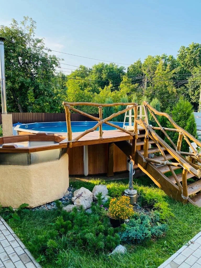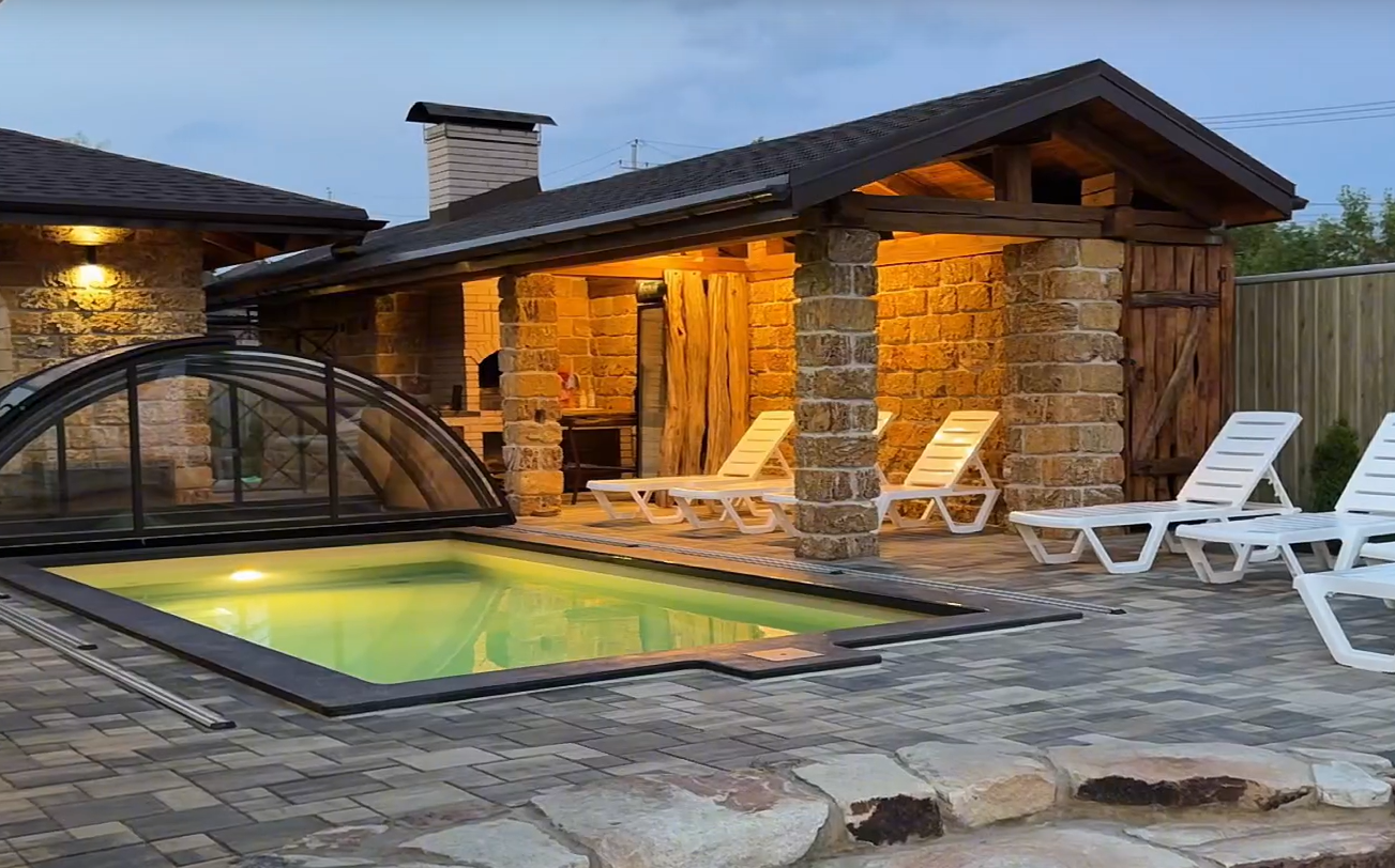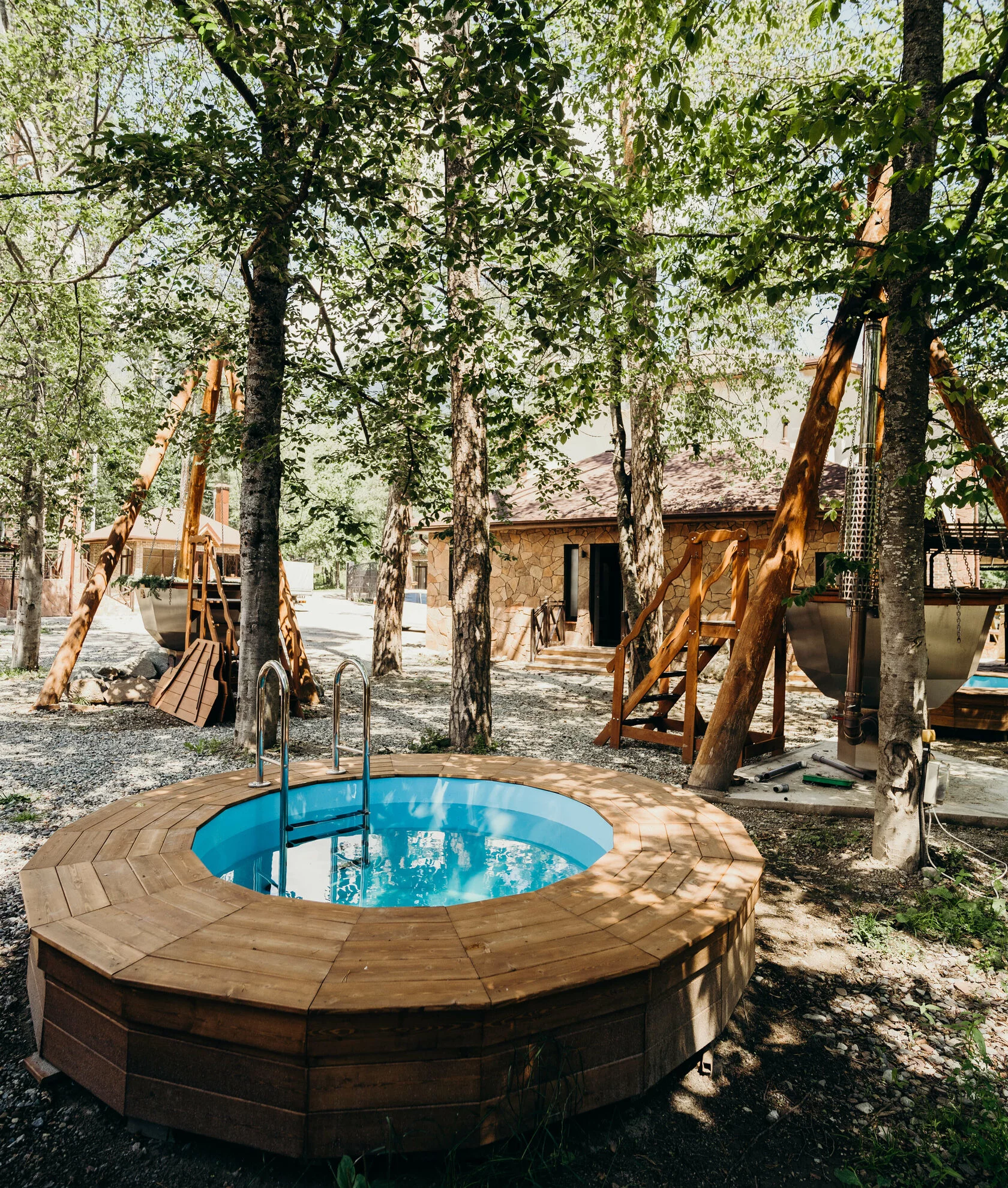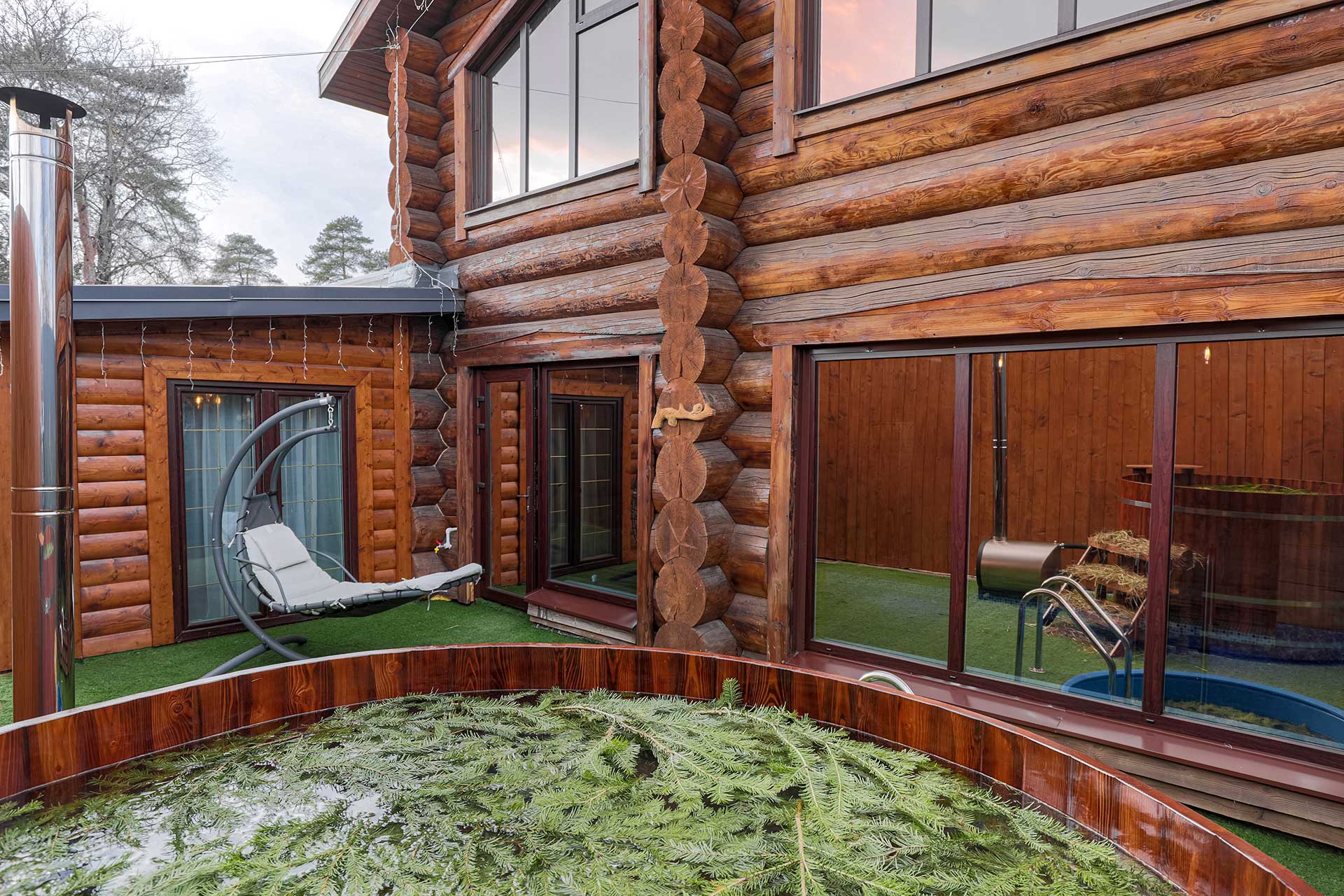 Для гостей оборудована аквазона с просторной помывочной и двумя купелями — с холодной и тёплой водой, что позволяет полностью расслабиться и насладиться водными процедурами. Любители активного отдыха оценят большой бассейн, где можно освежиться и зарядиться энергией.