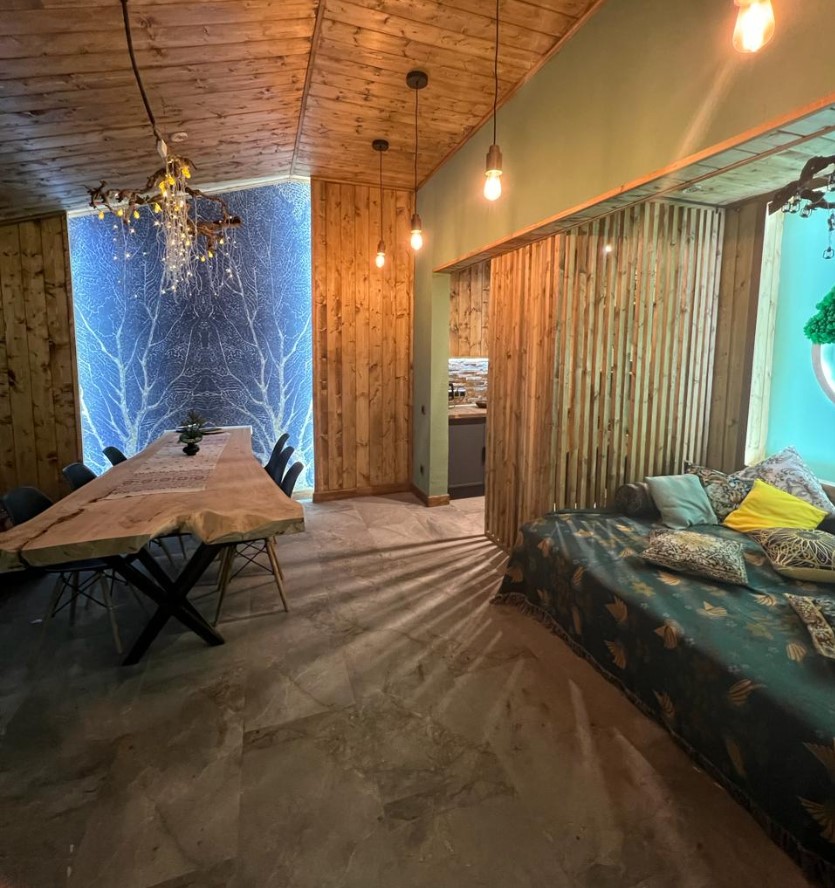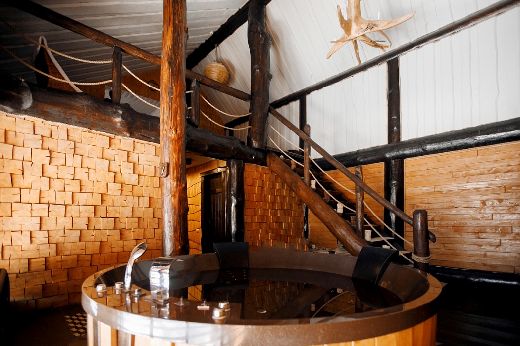 Вторая зона выполнена в стиле «Леший», с использованием необработанного натурального материала, создавая ощущение погружения в таинственный мир дикой природы. Живописный пейзаж и сибирский чан позволяют ощутить гармонию с окружающим миром и обрести истинное умиротворение.