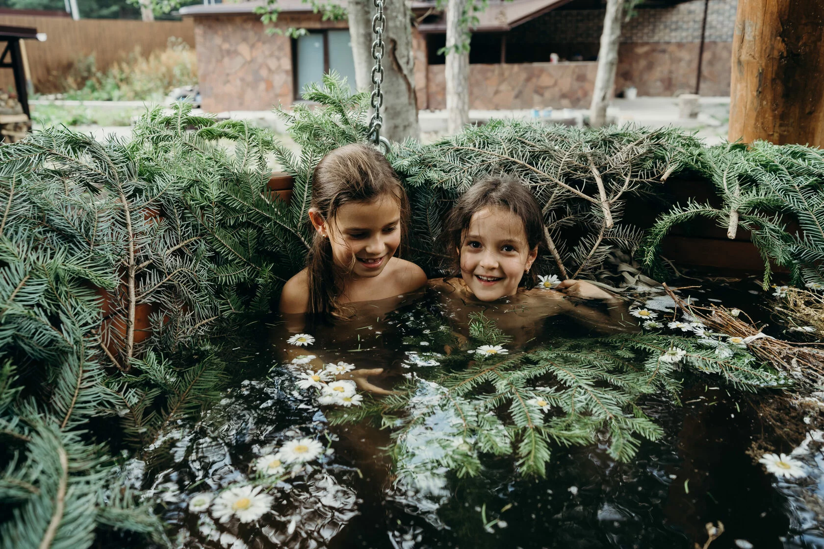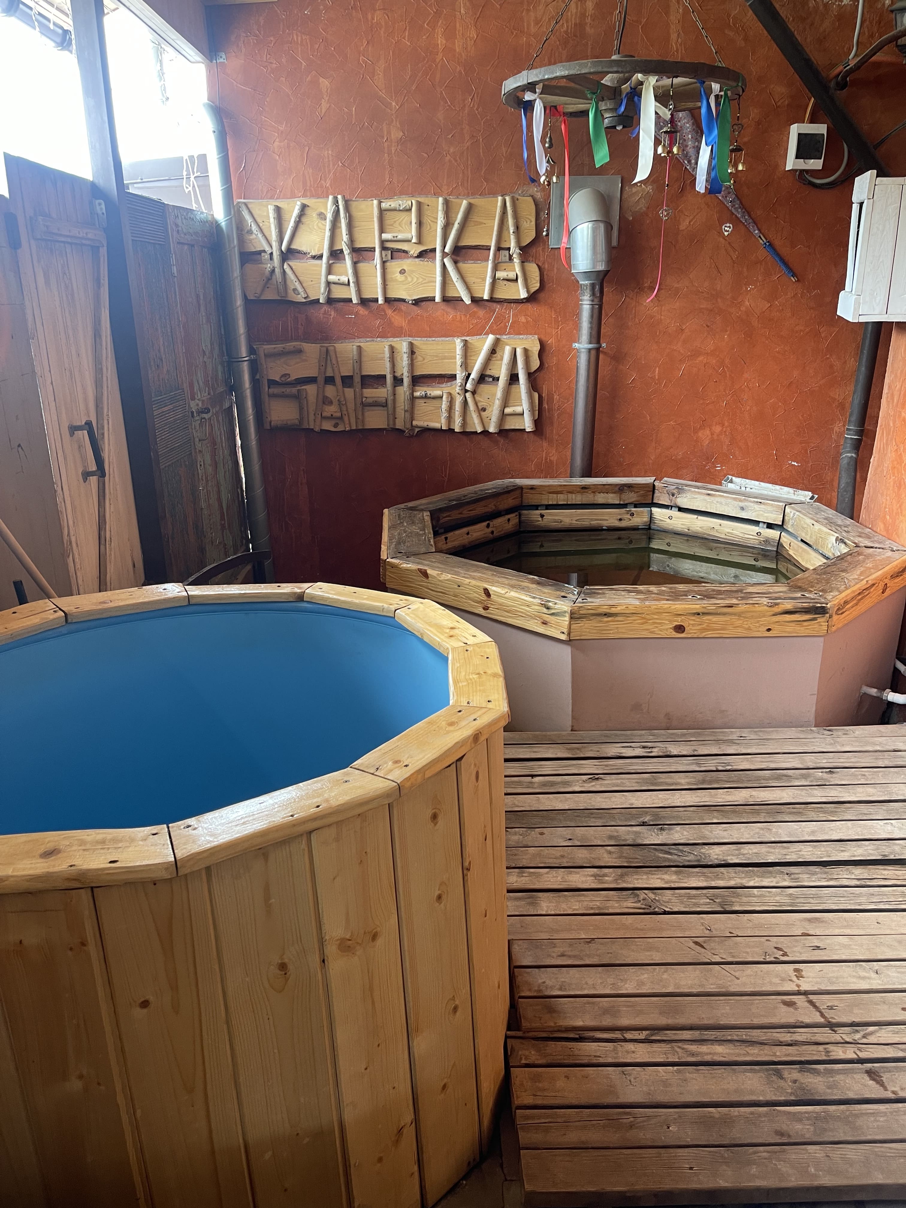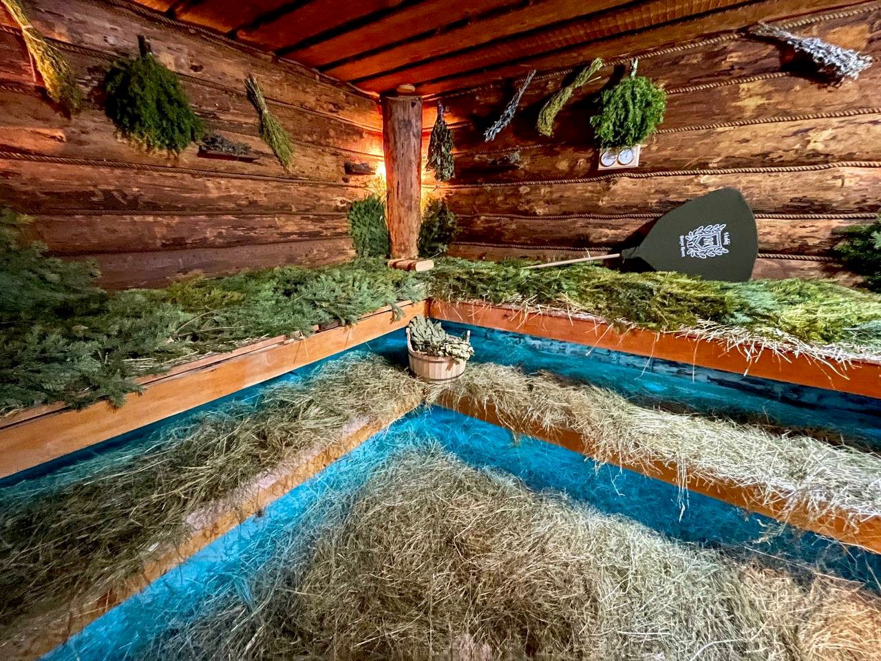 В комплексе уникальные срубы бани с бассейнами и общественный термальный комплекс с собственной кухней. В качестве сопутствующих услуг можно приобрести индивидуальное парение, массаж и прочее.