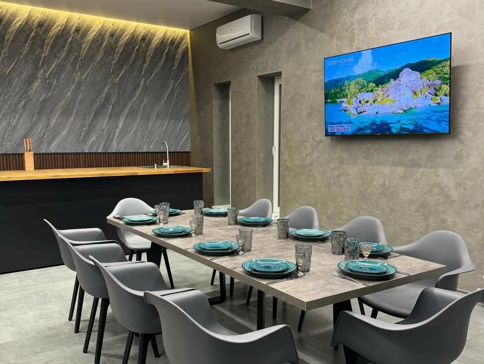 Для больших компаний предусмотрен роскошный дом, способный принять до 20 гостей. Современные номера, окружённые тишиной приватного двора, подарят комфорт и спокойствие после насыщенного дня.