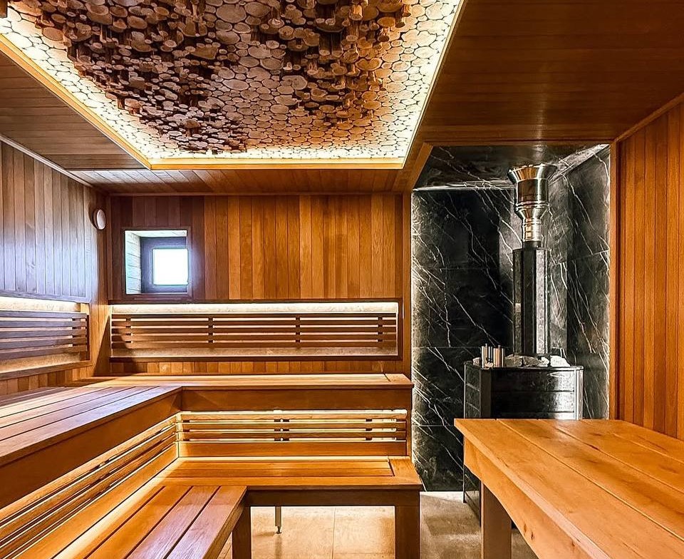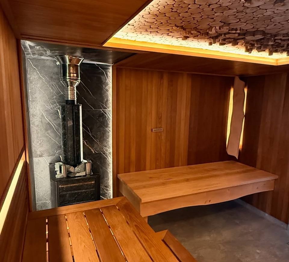 В банном комплексе три парных: Липа, Липа с лыком и Кело с отдельными зонами отдыха. В парной Кело находится печь Сочи К в облицовке из натурального камня пироксенит.