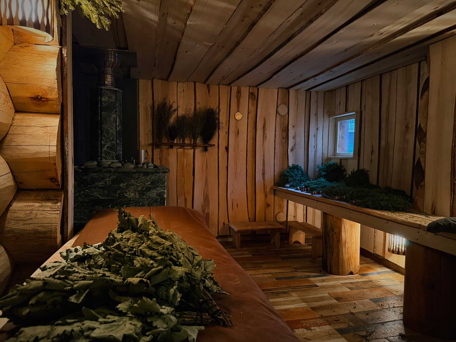 В банном комплексе есть женская и мужская общественная баня и отдельный домик «Кедровый сруб». В дополнительные услуги входят разные виды парения, и другие банные процедуры.