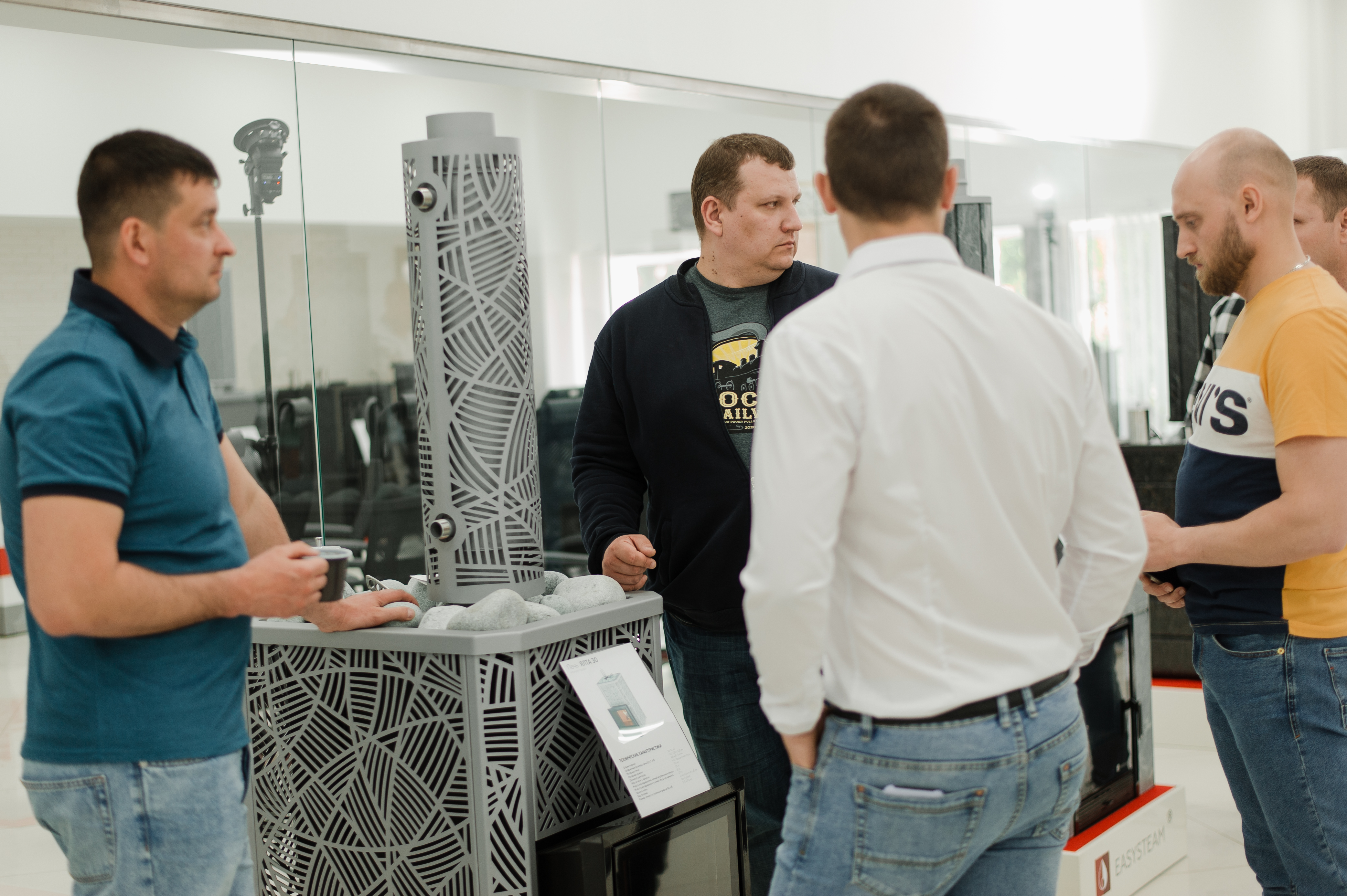 В течение нескольких часов специалисты Изистим из разных сфер деятельности делились знаниями с гостями, помогая лучше узнать все нюансы и тонкости продукции бренда EASYSTEAM. Огромная выставка продукции, на которой были представлены все линейки печей: для русской бани, для бани и сауны, новинка прошлого года серия печей Южная, печи для коммерческих бань, действующий камин, обливные устройства Каскад и множество дополнительного оборудования и фирменных банных аксессуаров, не оставила гостей равнодушными. По итогам встречи были закрыты все неясные моменты и накопившиеся вопросы. За весенне-летний период подобные встречи проведены с партнёрами из нескольких регионов и для Изистим стали уже традиционные.
