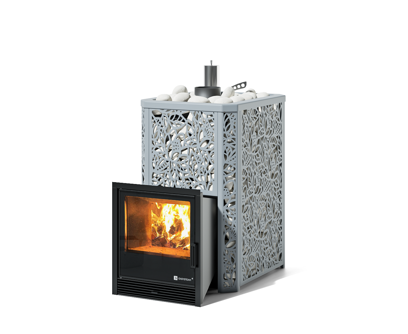 Особо прочная газо-дровяная печь постоянного действия, предназначенная для создания в парильном отделении общественной или коммерческой бани, условий русской бани и сауны, с присущим ей температурно-влажностным режимом. Резной кожух-сетка с открытой каменкой под закладку камней или с ламелями из природного камня позволяет сохранять выделяемое печью тепло и улавливать инфракрасное излучение. Ламели для кожуха могут быть изготовлен из четырёх видов природного камня: