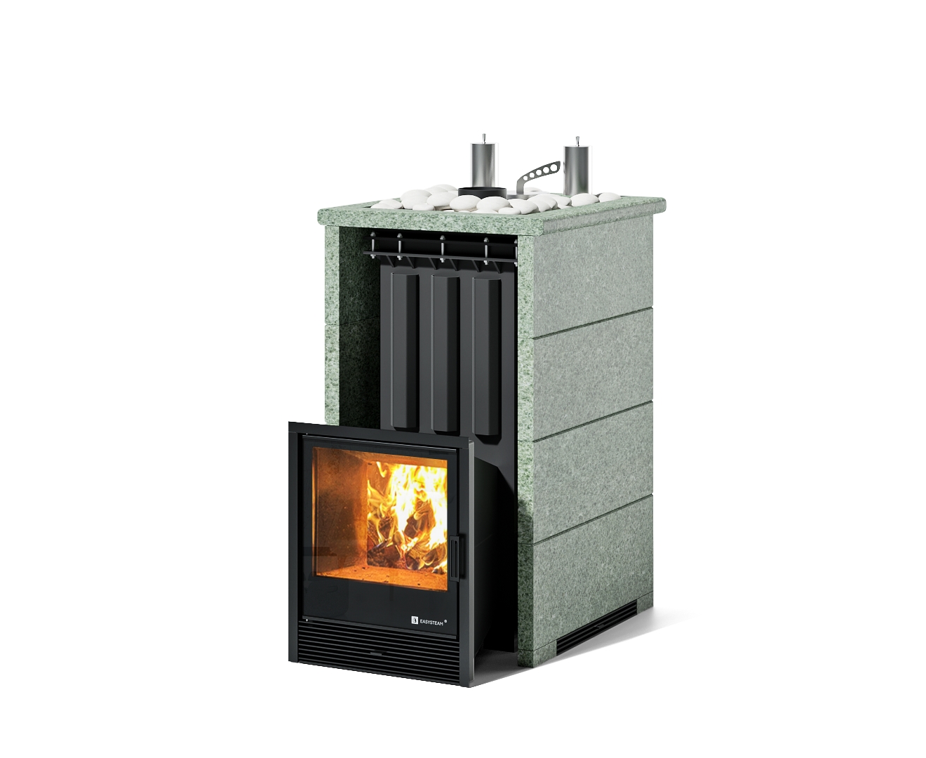 Печь оснащена съёмной закрытой каменкой, позволяющей разогревать находящиеся в ней камни до температуры 600 градусов.