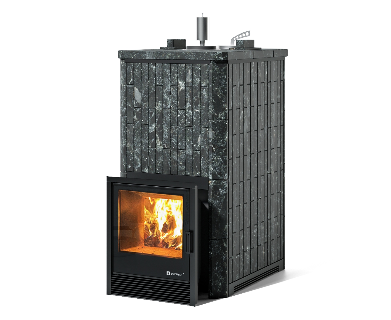 Южная - банная печь с уникальным узлом дожига дымовых газов , который обеспечивает более полное сгорание дров и и, как следствие, снижение расхода дров до 30%. Печь оснащена съемной закрытой каменкой, топка печи футерована шамотными плитами. В стандартную комплектацию печи входит индивидуально разработанный кожух из натурального камня толщиной 40 мм с регулируемой конвекцией.