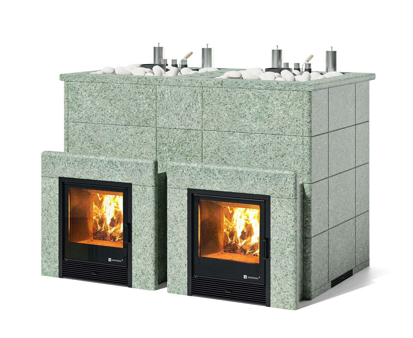 Печь оснащена двумя парогенераторами, позволяющими наиболее эффективно получать мелкодисперсный пар в больших количествах. Обеспечивает попадание воды на наиболее раскаленные камни, что позволяет получить настоящий легкий пар наивысшего качества.