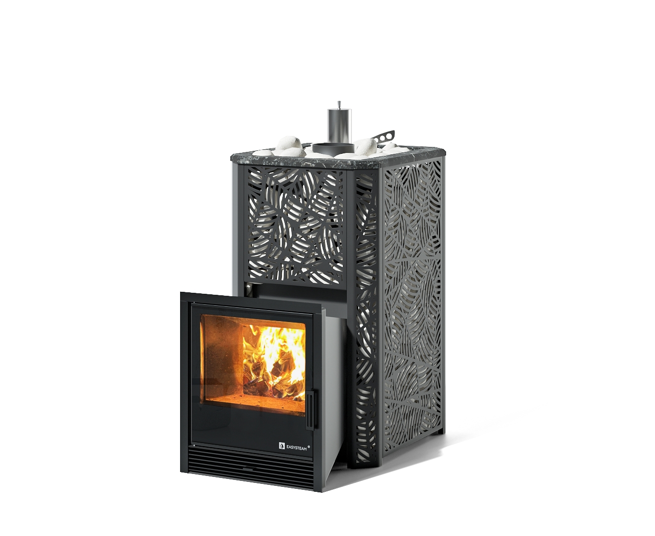 Закрытая каменка позволяет разогреть камни до высоких температур 500-600 градусов, а встроенный парогенератор обеспечивает попадание пароводяной смеси на нижний самый разогретый слой камней, и на выходе получить качественный мелкодисперсный лёгкий пар.
