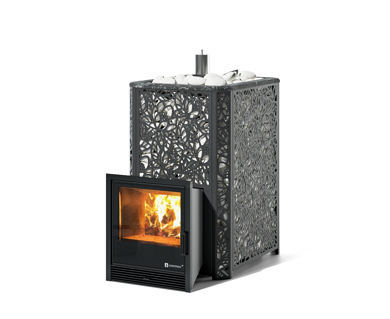 Массивная открытая каменка обеспечивает динамичный прогрев парного помещения и комфортный режим сауны.